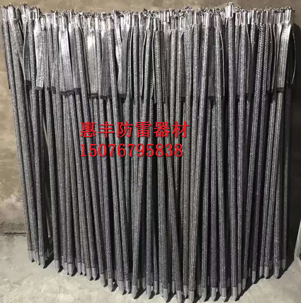 、快装式柔性石墨接地极一般要求,快装式离子型石墨接地极包括入地尖头、动力棒、降阻管、缓释型物理降阻膏和石墨接地带,石墨层采用高纯麟片石墨(纯度)经过氧化处理和高温膨化并用玻璃纤维和合成纤维及配比的水乳型粘合剂并与制成,石墨层内部有降阻管,降阻管内不填充有缓释型物理降阻膏。配动力棒,通过动力帮将接地极安装在土壤下。快装式离子型石墨接地极连接引线与同等级的石墨基柔性接地带,采用非金属夹具通过楔入式压接方式连接。