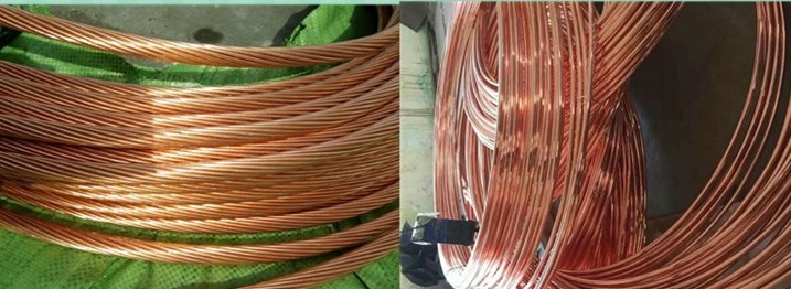 铜包钢绞线和铜包钢圆线是两种产品,其产品详细介绍在本网站产品列表中查找。铜包钢绞线和铜包钢圆线有相同之处,也有差异之处。我发一张两个产品的对比照片,就会一目了然。